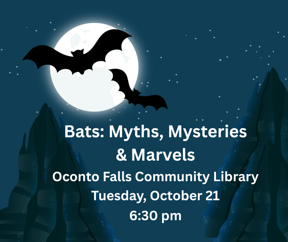 Join us for Bats: Myths, Mysteries & Marvels at the library on Tuesday, October 21st at 6:30pm!