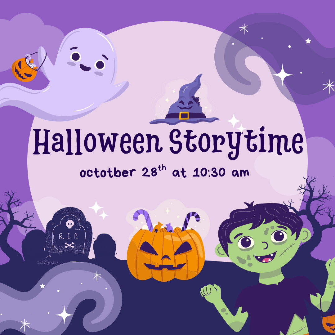 Join us for a Halloween-themed Storytime! This is a traditional library Storytime recommended for kids 0-8 and their guardians. We’ll sing songs, read stories about Halloween and make a craft for kids to take home. See you there!