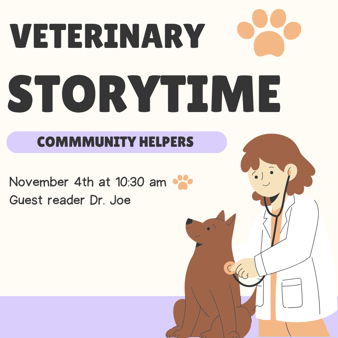 Join us for a Veterinarian-themed Storytime! This is a traditional library Storytime recommended for kids 0-8 and their guardians. We’ll sing songs, read stories about Veterinarians and make a craft for kids to take home. Dr. Joe will be our guest reader!